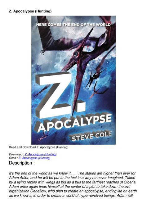 z apocalypse hunting Epub By Click Button. z apocalypse hunting it’s easy to recommend a new book category such as Novel, journal, comic, magazin, ect. You see it and you just know that the designer is also an author and understands the challenges involved with having a good book. You can easy klick for detailing book and you can read it online, even you can download it